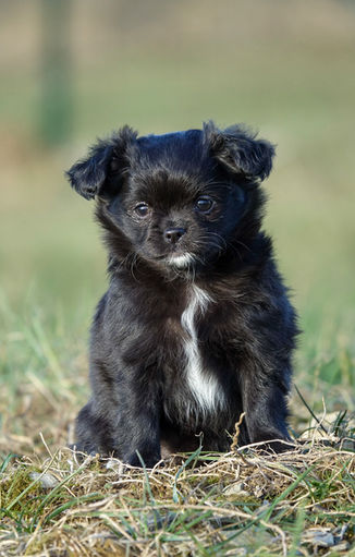Bliss est une petite femelle Chihuahua poil long, noire panachée de blanc 🖤🤍