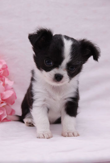 Alya est une adorable petite femelle Chihuahua noir et blanc.