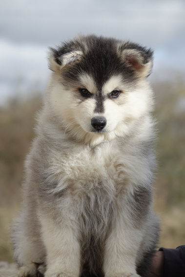 Aslan est un mâle Pomsky de couleur gris. Il aura le poil fluffy et son gabarit adulte est estimé autour de 14 kg.